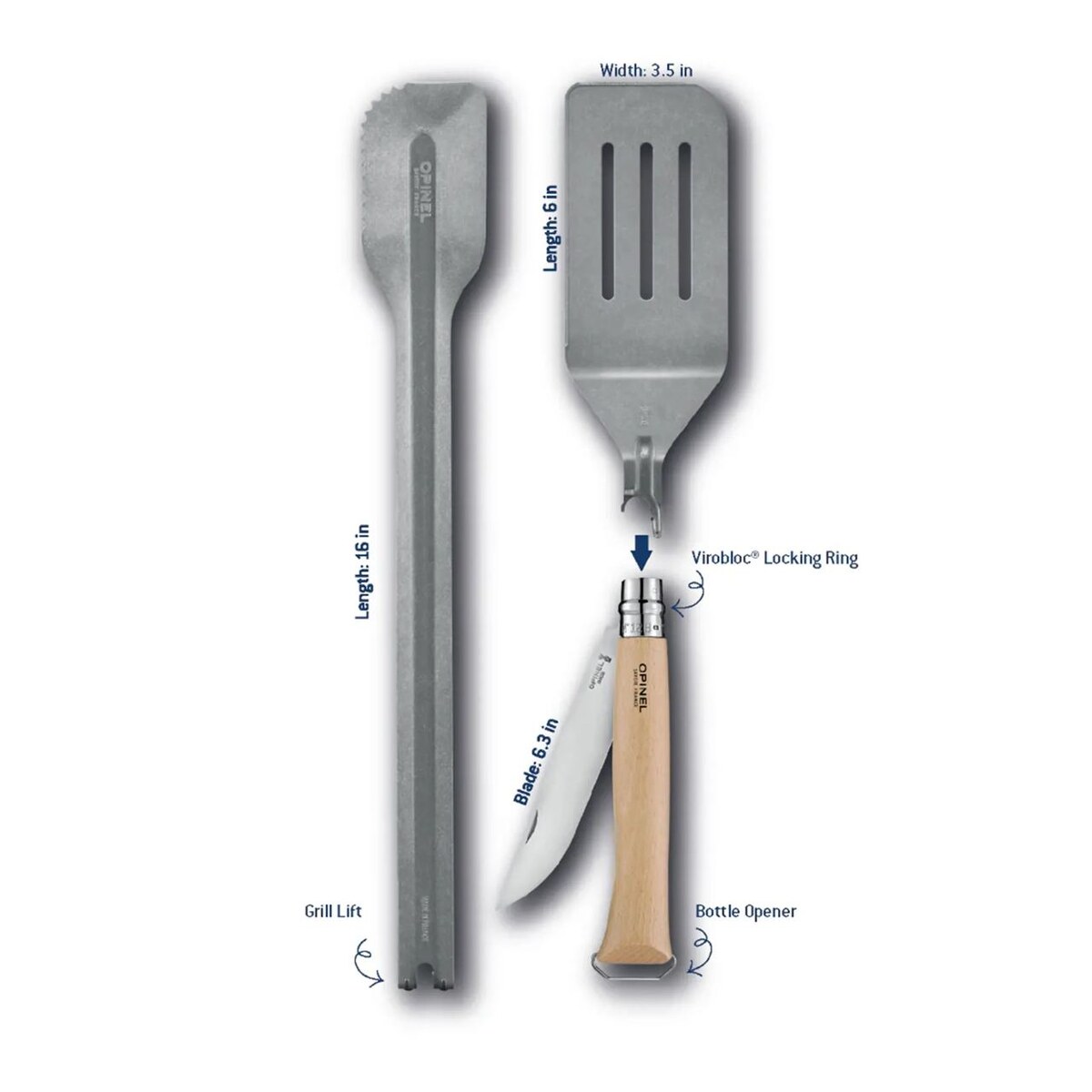 Забавная дичь. Вы, конечно, знаете легендарный бренд карманных ножей Opinel (Франция). Это не мой бренд, но очень интересно, что он только что выпустил набор для гриля на лето. Классические складные ножи бренда уже считаются необходимыми инструментами для пикников, а теперь они стали еще более незаменимыми благодаря новому кулинарному многофункциональному набору. Набор Opinel Grilling Set включает нож с лезвием No. 12B и насадку Spatula+, превращающую нож в лопатку длиной 15 ¾ дюйма. В комплект также входят щипцы для гриля. Стоил на старте продаж $130, и распродан за сутки.