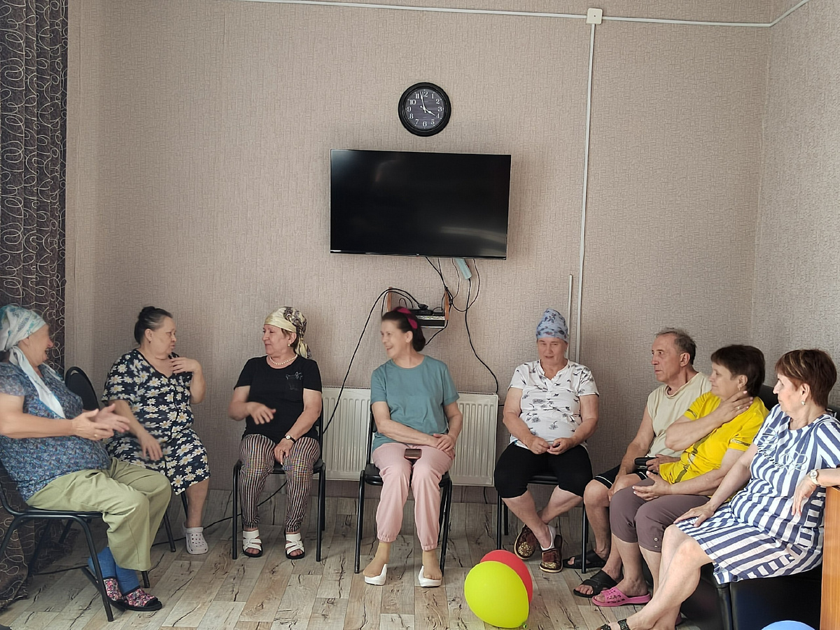 Игровые упражнения, способствующие общению, были приняты получателями услуг в ЦСОН «Нежность» с радостью В процессе психологического тренинга, проведенного в игровой форме, отдыхающие общались друг с другом с помощью жестов, мимики и телодвижений. Благодаря тренингу получатели услуг смогли преодолеть барьер, который обязательно присутствует в общении мало знакомых людей. Все стали более открытыми и рскрепощенными. Главное, после обучающей игры они стали более доверчивы в отношении друг к другу. Фото из архива ЦСОН «Нежность»