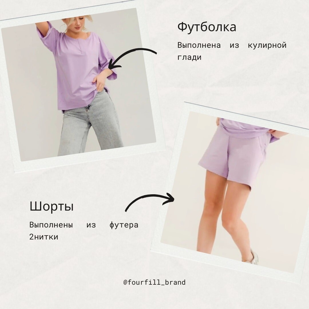 Расскажем о наших трикотажных костюмах с шортами и футболкой оверсайз Костюмы мы шьем из трикотажного полотна, качества Пенье. Это самое высокое качество полотна. Верх и низ выполнены из разной ткани. Футболка из кулирной глади. Шорты из футера. Почему так? Потому что в футболке из футера будет очень жарко. Она и по структуре будет отличаться, и по составу ткани. И когда вам рассказывают, что это самая плотная ткань, это модно и прочее. Просто знайте, футер дешевле, и замарачиваться с остатками никто не захочет. Мы заморочились, и мы довольны результатом. Подобраны цвета-компаньоны, поэтому зрительно смотрится одноцветным костюмом. При этом футболка выполнена из более легкого, тонкого и дышащего материала. А шорты из более плотного, чтобы держали форму и после первой же стирки не превратились в тряпку. И помните при правильном уходе - вещи вам прослужат очень долго. С уважением, команда бренда FOURFILL #fourfill #россия #российскийбрендодежды #повседневнаяодежда #одежданал
