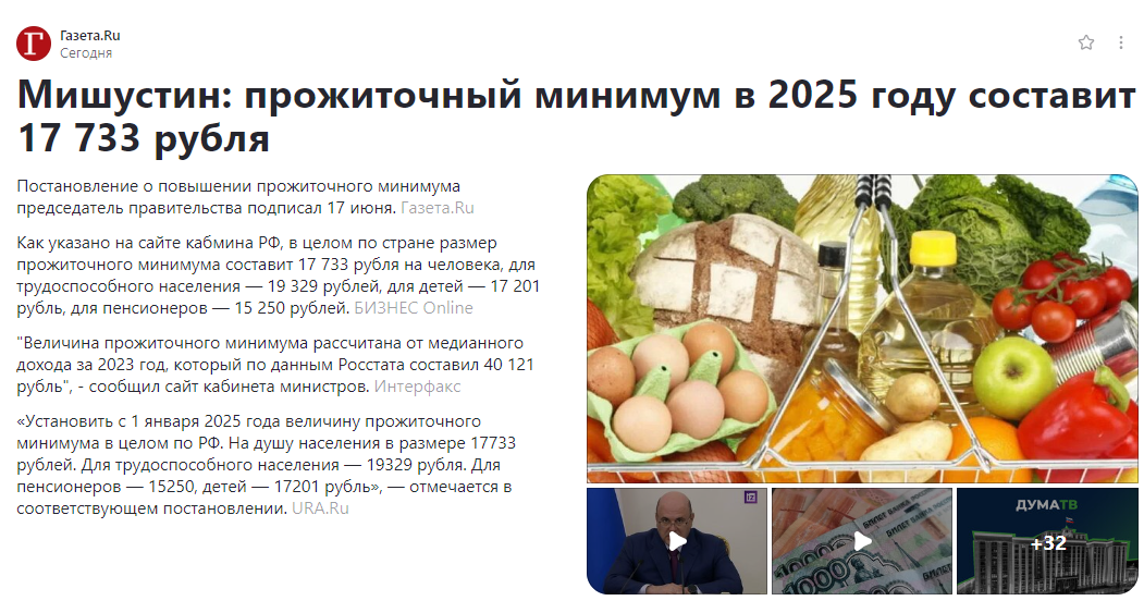 Ну что? Скоро заживем. В 2025 году Мишустин пообещал нам прожиточный минимум аж 17 733 рубля