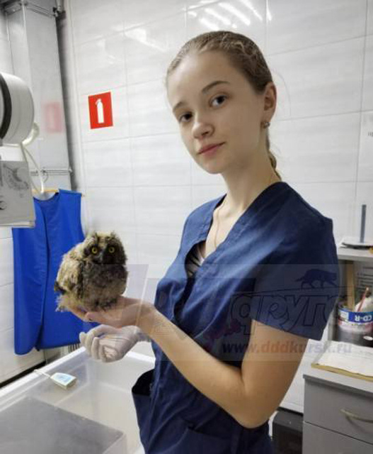 Раненого слётка ушастой совы куряне нашли в Золотухинском районе. Связались со специалистами из минприроды, те привезли птенца в вет-клинику. «У него была сломана лапа. Скорее всего, травму птенец получил, когда покинул гнездо. В природе это происходит постоянно: не все малыши могут сразу взлететь. Они падают на землю, родители продолжают их кормить и охранять, и через 2–3 дня, набравшись сил, слётки уже встают на крыло. Но тут все пошло не по плану. Предположу, что гнездо находилось на верхушке сосны, падать высоко, а у сосны длинный гладкий ствол – нет веток, которые послужили бы амортизацией. Сломанная лапа – это приговор для беспомощного птенца. Скорее всего, он стал бы добычей хищников», – рассказывает Виктория Быканова.