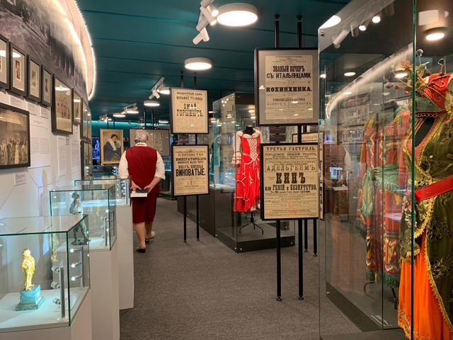 Всего в экспозиции музея более 300 предметов из фондов Курского драмтеатра, Бахрушинского театрального и Курского краеведческого музеев: архивные документы, театральные костюмы лучших спектаклей прошлого века, макеты декораций, афиши, портреты прославленных деятелей, графические изображения зданий театра XIX–XX веков. В частности, из коллекции Бахрушинского музея – 30 уникальных экспонатов, десять из них – подлинники.
