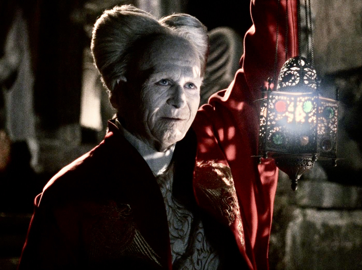 Но, конечно, сильнее всего врезался в память его облик глубокого старца. Ах, какая у него мимика, какая игра! Каждый кадр можно было резать на скриншоты. Особенно мурашки прошли по коже, когда он слизывал кровь Харкера с острой бритвы и когда этой же острой бритвой пытался его побрить. А вы точно барбершоп?