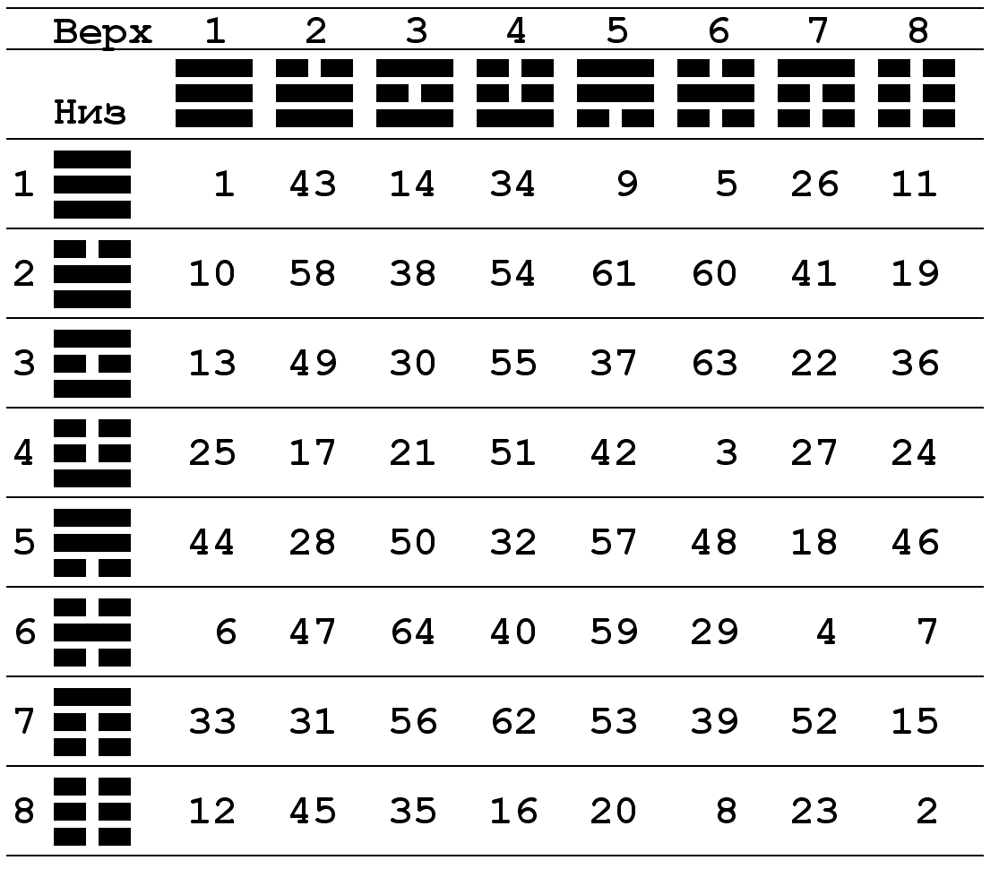 Пользуясь советами из Книги Перемен, всегда убеждался в ее практичности. Разные уровни понимания толкования, дают лишь точность в диагностике и правильности выводов. Интерпретации гексограмм сложны для простого человека. Есть упрощенное толкование по каждой гексограмме. Её для пользователя не искушенного в китайской культуре, хватит на первое время. Но потом захочется более глубокого анализа ситуаций. Главное определиться с гексограммой, на текущий момент. Для этого в Китае использовали сложные методы. Но оно того стоило. Это самое важное. Это определяет свойство потока энергии в котором вы сейчас находитесь. В нашей реалии можно пользоваться монетами. Опуская промежуточные моменты, расскажу, как я это делаю сейчас. Я взял восемнадцать монет по два рубля. В гексограмме шесть черт. Я беру первые три монеты в ладонь. Трясу их для перемешивания в сжатых в клубок ладонях и кидаю свободно на поверхность стола, пола или еще на что-нибудь ровное. Упавшие монеты выпадают орлами и решками. Дл