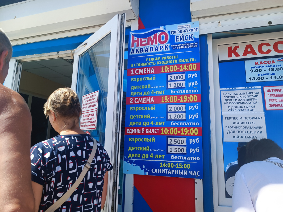 Я была довольно скептически настроена перед посещением аквапарка в Ейске. В прошлую поездку мы сюда не попали - в сентябре "Немо", расположенный под открытым небом между пляжами " Каменка" и "Меляки" был уже закрыт. Однако уже тогда стало ясно, что он очень небольшой. А входной билет стоит - прямо как в Москве в огромный сходить. Да ладно Москва, мы дешевле в сочинской краснополянский Лауре в в горах аквапарке купались! Но дети просили, так что решила сводить их разочек. Делюсь впечатлениями😘 В "Немо" есть три варианта посещения - 10 утра до 14, с 15 до 19, или на целый день. Цена за полный день не сильно выше, чем за 4 часа, так что если у вас хватит сил - смело берите на весь день. Мы выбрали первый, утренний сеанс и подошли к 10 часам - в кассах уже очереди, а так как они открываются в 9 утра - лучше прийти заранее. К оплате принимают и карты, и наличные - еще в прошлом году не все развлечения в Ейске можно было оплатить картой. Прогресс на лицо✊. Само крытое помещение очень