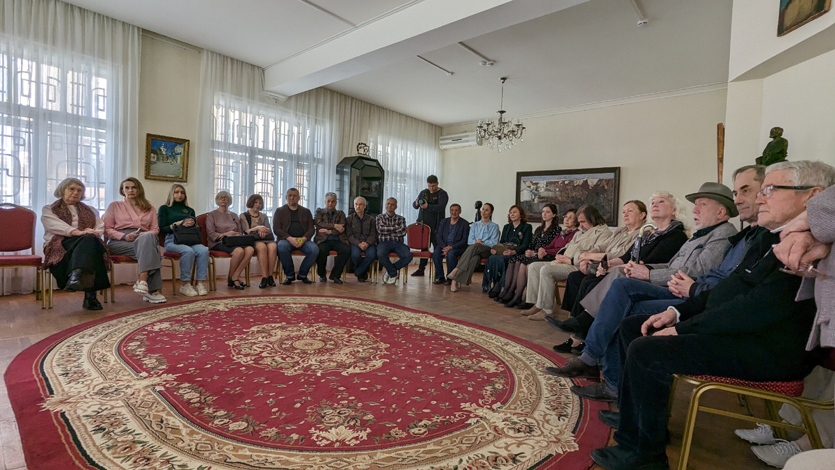 А еще он помогал людям, делал это незаметно, но конструктивно, а еще мог предвидеть будущее. Когда Советский Союз распадался, он пошел в здание обкома партии и сказал о том, к чему это приведет. Чиновники отнеслись к этому его заявлению холодно, но последующие события показали, что он был прав. Ирина Виленовна провела небольшую экскурсию по выставке. Она отметила графику, монументальные работы отца. Рассказала об истории создания нескольких произведений. Еще она отметила, что в одном из интервью, Вилен Дмитриевич на каверзный вопрос ответил, что он - верный друг.