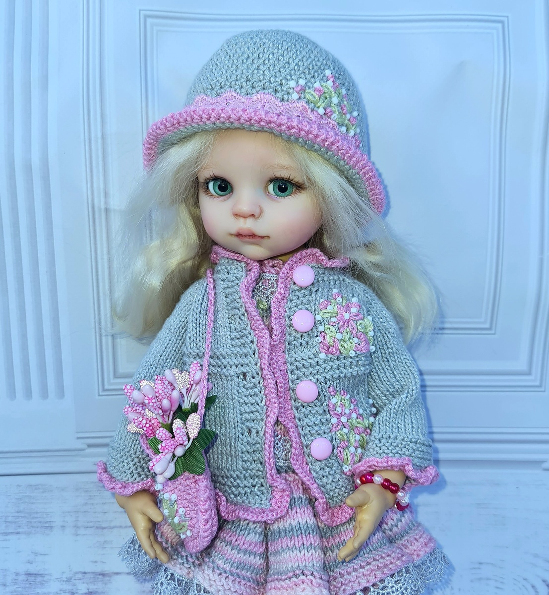 Не верите? Тогда читайте дальше, доказываем вместе с Марьяшей. Куклам стало скучно, и я решила их развеселить, поиграть, а заодно и вам рассказать и показать историю. Примерила Марьяша серо-розовый наряд (я его называю то "Закатом", то "Рассветом", не суть). Её зелёным глазкам такой цвет идёт. А уж смирная какая стала в романтичном образе! Настоящая барышня. Не уж-то и разбойничать не хочется? В таком костюме нет, не хочется. Только сидеть на скамейке под ночным небом и звёзды считать. Позвали мы с Марьяшей Машу. -А Машка примеряла этот наряд? -Конечно, вот же. -А Пантеру примеряла? -Ага, и Пантеру примеряла. -Эх, скучно. А нового ничего нет? -Для вас пока нет, есть для малышни, для Бонеки. -Да, маловатенько будет! -А хотите я вам историю расскажу, как я задумывала ваши наряды и что в итоге получилось? -Ну попробуй. -О пряже я писала здесь: А теперь о самой работе. С выкройками и описаниями я не заморачиваюсь, всё делаю по одному шаблону, по одному описанию. И задумывались наряды сов