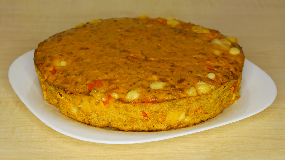 Ингредиенты: Приготовление: Лук, перец и бекон мелко нарезать и по отдельности обжарить. Для пряной смеси смешать соль, перец чёрный, приправу «Томат, базилик, чеснок», чеснок гранулированный и копчёную паприку. Сыр порезать небольшими кубиками. Отделить белки от желтков. Куриное филе измельчить в блендере. Объединить измельчённую курицу с желтками, пряной смесью и манной крупой, тщательно перемешать и ещё раз пробить погружным блендером. Добавить сыр, обжаренные лук, бекон, перец и перемешать. Белки взбить и за 3 раза вмешать в получившуюся смесь. Выложить в форму и запекать 35 – 40 минут при температуре 175 – 180°C в предварительно разогретой духовке. Приятного аппетита!