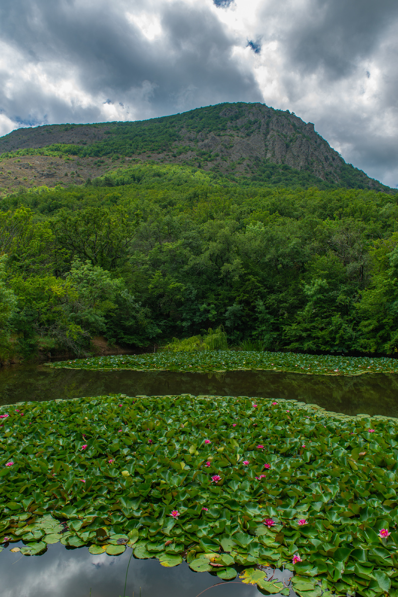Не перестает нас удивлять Крым. Вот вроде уже были в сотнях разных мест. Поднялись на десятки вершин. Прошли по тысячам троп. И тут, внезапно, цветущие кувшинки в малюсеньком озере у подножья горы Аю-Даг.
