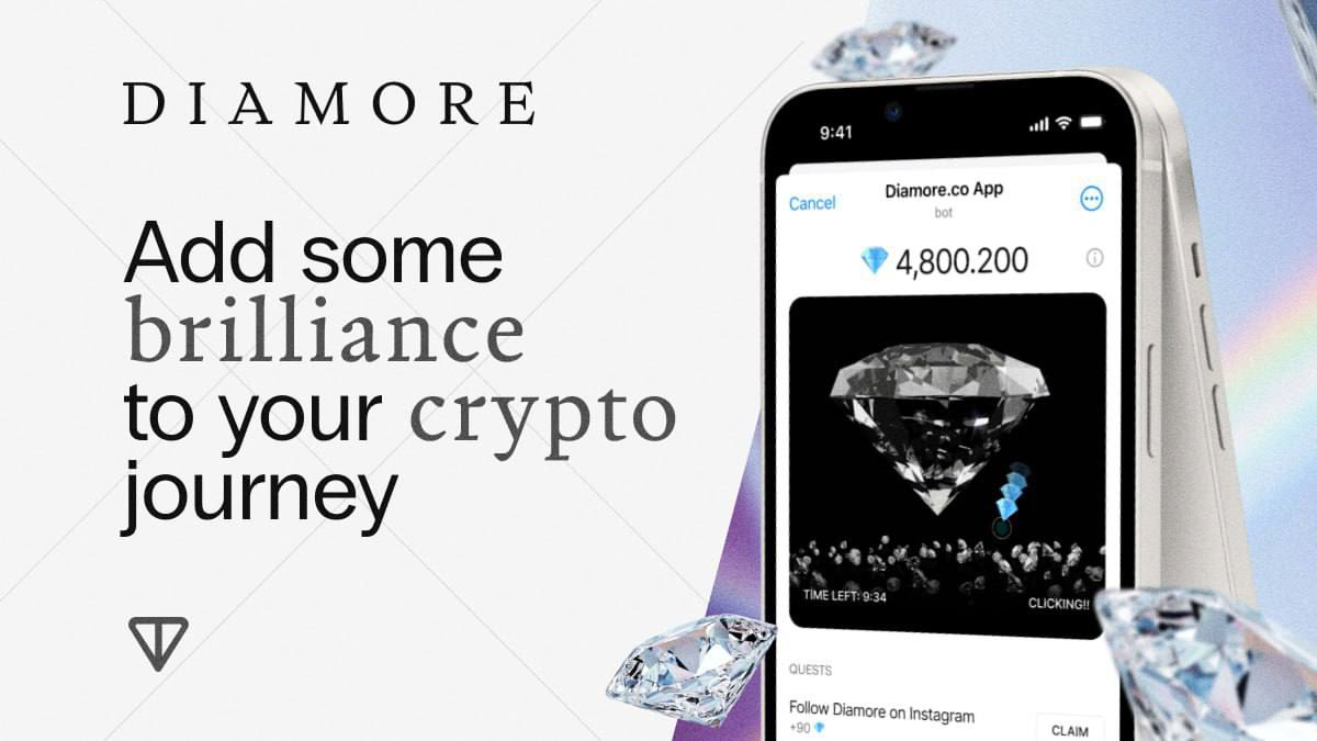 Diamore - маркетплейс по продаже алмазов и платформа токенизации натуральных бриллиантов с помощью блокчейна и NFT. Добро пожаловать в Diamore, где инновации сочетаются с элегантностью в мире блокчейна. Мы стремимся произвести революцию в алмазной отрасли, используя возможности NFT токенов, чтобы предложить уникальные цифровые изображения изысканных бриллиантов. Компания занимается продажей токенизированных бриллиантов. Все камни проходят сертификацию в Gemological Institute of America (GIA) и получают уникальный цифровой сертификат. После для каждого алмаза создают уникальный NFT токен. С помощью каталога, на сайте компании, покупатель выбирает, оплачивает необходимый ему камень и получает NFT токен, подтверждающий владение данным бриллиантом. Владелец алмаза всегда может забрать свой бриллиант в одном из хранилищ компании или заказать доставку. DiamoreCryptoBot - приложение в виде игры-кликера, в котором пользователь может получать токены за клики по экрану. Каждый участник имеет во