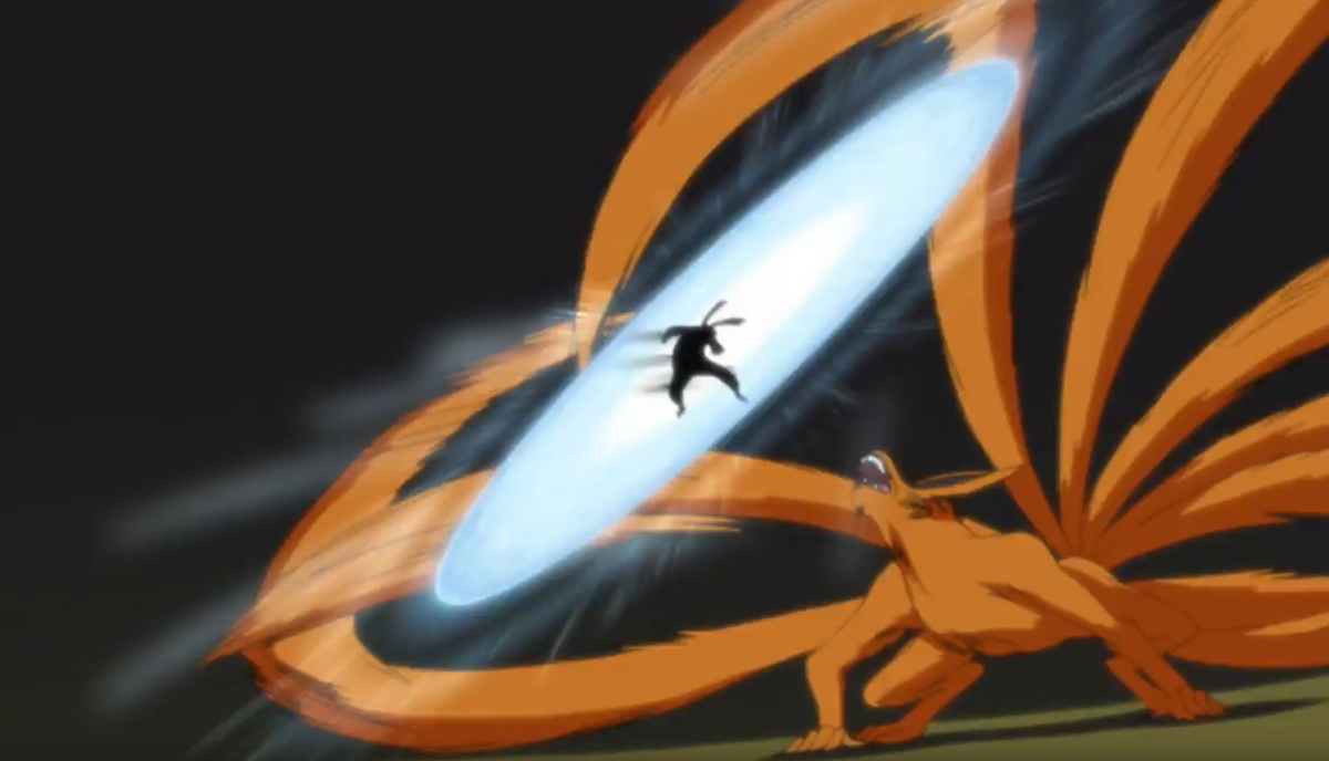 - Кьюби - это сгусток чакры, именно поэтому, вероятно, он может взаимодействовать с ней на другом уровне. Если ДЕРЕВО, встретившее Расенган, будет разламываться в щепки, то хвост Кьюби, являющийся ЧАКРОЙ, просто будет с ним взаимодействовать, как с, действительно, резиновым мячом... которым Кьюби пытаются задавить. То же самое было и с Восьмихвостым против бомбы Десятихвостого.