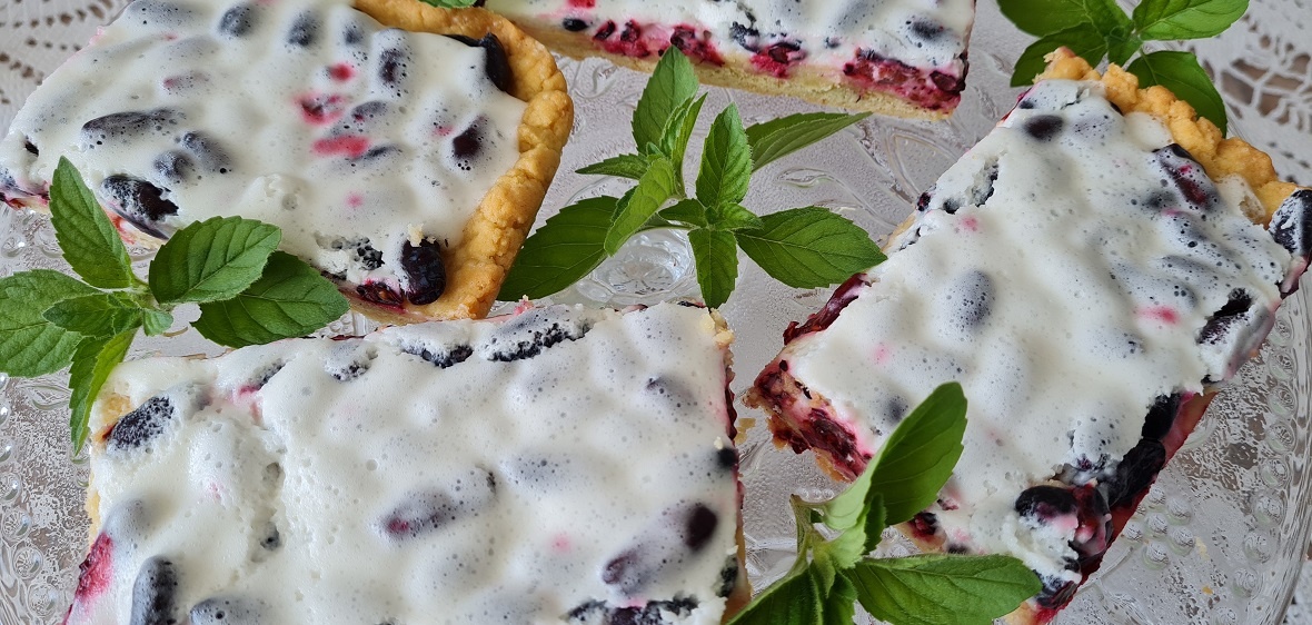 Жимолость в огороде уже поспела, да и клубники в продаже полно — пора печь летний ягодный пирог. Вам понадобится: — 2 яйца; — маргарин – 250 граммов; — сахар – 1 стакан в тесто и 1 стакан в крем; — мука белая – 3,5 стакана; — сода пищевая – пол чайной ложки; — уксус столовый 9% или яблочный 6 % – 1 столовая ложка; — свежие ягоды – примерно 5 стаканов; — сметана 20% – 400 граммов; — немного растительного масла для смазывания противня. Сначала приготовим песочную основу. Отварите вкрутую одно яйцо, остудите, почистите, отделите желток варёного яйца и положите его в сахар. Разотрите желток до однородной массы с сахаром в посуде, в которой будете готовить тесто (алюминиевую не используйте). Растирать удобнее и быстрее руками. Вареный белок в пироге не используется. Влейте растопленный маргарин, но не перегревайте его и не кипятите — он должен быть тёплым. Добавьте одно слегка взбитое сырое яйцо, пищевую соду, погашенную уксусом. Хорошо перемешайте и всыпьте постепенно, вымешивая тесто, про