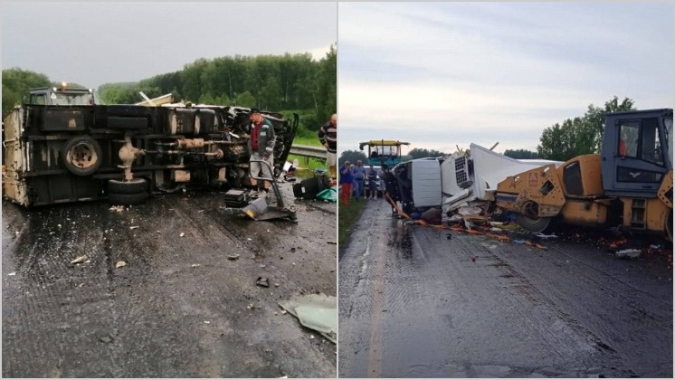 В Тогучинском районе Новосибирском области 17 июня 2024 года большегруз въехал в дорожную спецтехнику. Информация об этом появилась в телеграм-канале «Новосибирск с огоньком». По информации очевидцев, грузовик Mitsubishi Fuso Canter на скорости въехал в стоящий на месте асфальтоукладчик. От сильного удара фура вылетела на встречку и там уже столкнулась с дорожным катком. В результате аварии грузовик опрокинулся на левый бок, рассыпав по всей дороге перевозимые фрукты. Водитель Mitsubishi отделался легкими ушибами, помощь медиков ему не потребовалась. А вот его пассажир якобы получил серьезную черепно-мозговую травму и переломы. На момент публикации в региональной Госавтоинспекции ситуацию не прокомментировали. Точная информация о состоянии автомобилиста и его пассажира пока неизвестна. Ранее «Вести Новосибирск» писали, что в Новосибирске 17-летняя девушка пошла по дороге вне «зебры» и попала под колеса.