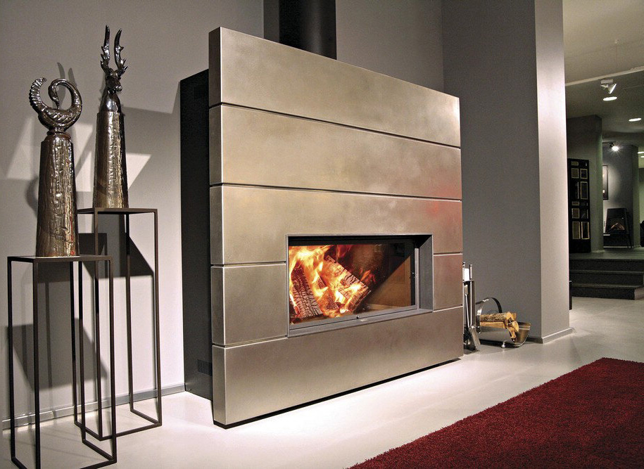 Некоторые любители стиля «хай-тек» планируют отделать свой камин листами из нержавеющей стали. Такое дизайнерское решение имеет свои особенности, которые стоит учитывать во время обустройства портала. Во-первых, металл будет более сильно нагреваться, чем камень, что с одной стороны неплохо для отопления помещения. Но на некоторых участках нагрев может быть достаточно сильным, что потребует дополнительных мер безопасности.