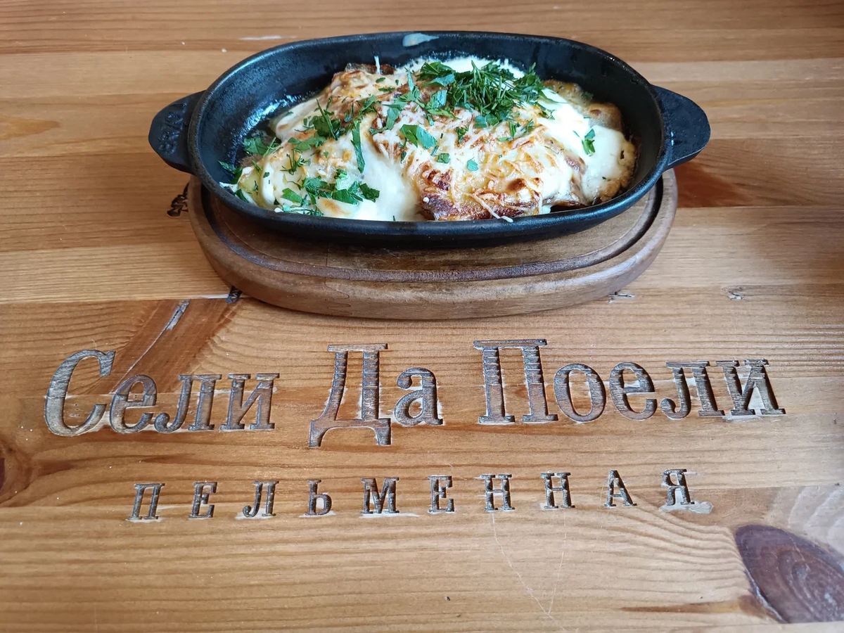 Некоторые горячие блюда кафе "Сели да поели": Сочная скоблянка на сковородочке: Картофельные драники со сметанно-чесночным соусом Жареный картофель со свининой Куриный шницель Стейк из свиной шеи Бефстроганов с картофельным пюре Из выпечки хороши хачапури по-Аджарски Список десертов тоже достаточно традиционен. К сожалению летним воскресным вечером сливочная панна-котта с пюре из манго уже закончилась, а очень хотелось именно её. В «Сели Да Поели» ещё стоит заглядывать время от времени за новыми гастрономическими впечатлениями. Здесь регулярно балую гостей сезонными и лимитированными угощениями. Поживём, увидим.