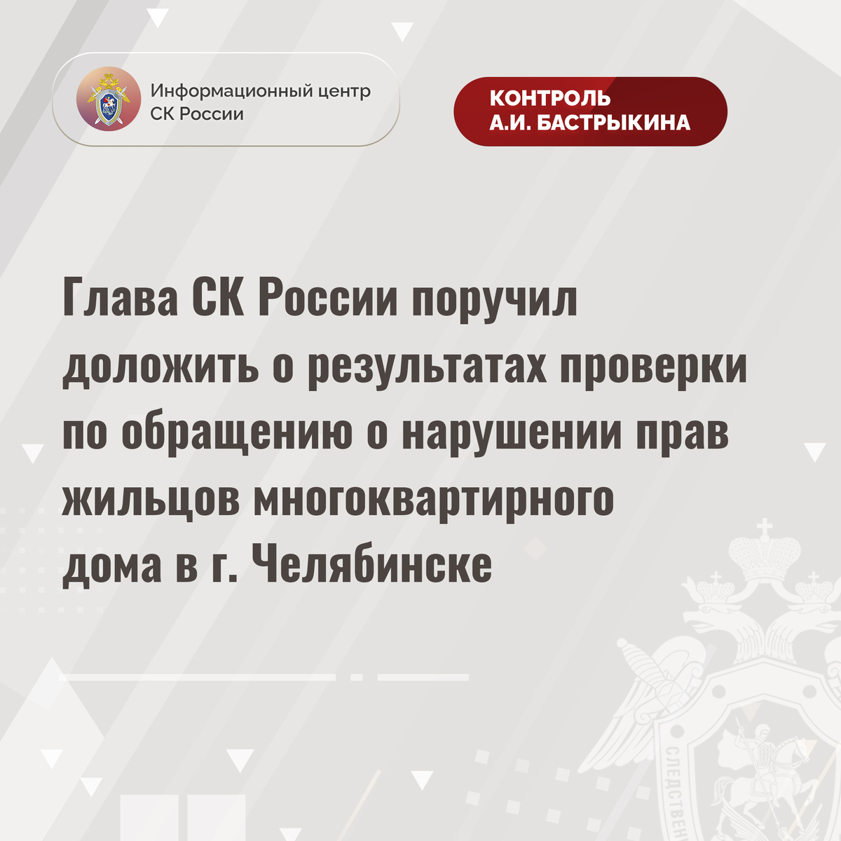 Глава СК России поручил доложить о результатах проверки по обращению о нарушении прав жильцов многоквартирного дома в г. Челябинске