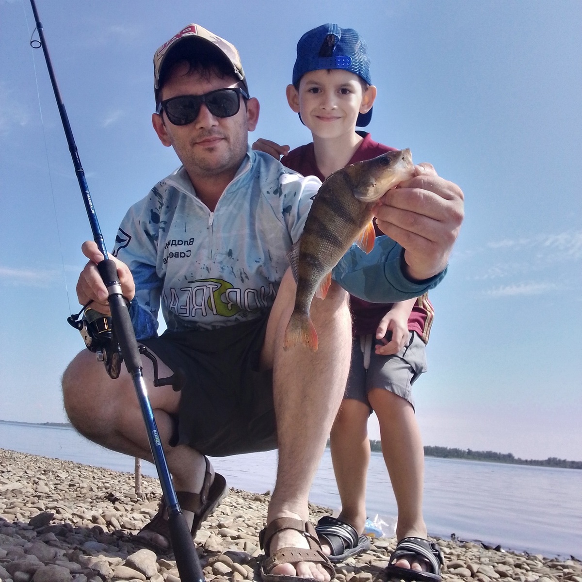 На самом деле, очень хотелось назвать отчёт «День невезения», так как первую поклёвку — большого голавля — проворонил мой Чемпион, что, конечно же, простительно. Ведь и ловил-то он на новую для себя приманку — тейл-спиннер, так что ему явно было непривычно постоянно крутить катушку. Вторую проворонил я сам, но, увы, там уже просто «не сложилось». Массивная поролонка длиной 140 мм, но всё равно подсечка оказалась пустой и (предположительно) судак остался без памятной фотографии. Ладно, не беда! Окунь — наше всё. Ведь чтобы уехать с Волги в данное время без поклёвки окуня, действительно ещё нужно постараться. На этот раз ловили предсерийным спиннингом Norstream Flagman V 862MH (10-42 г), и так уж сложилось, что в основном по нижней границе заявленного теста. А порой и еще ниже, так как жерех своими регулярными всплесками метрах в пятидесяти от нас побуждал периодически переключаться и на него. А жерех — это и уокер весом 8,5 г, и известный пилькер Trophy весом всего 7 г, а чуть реже — и