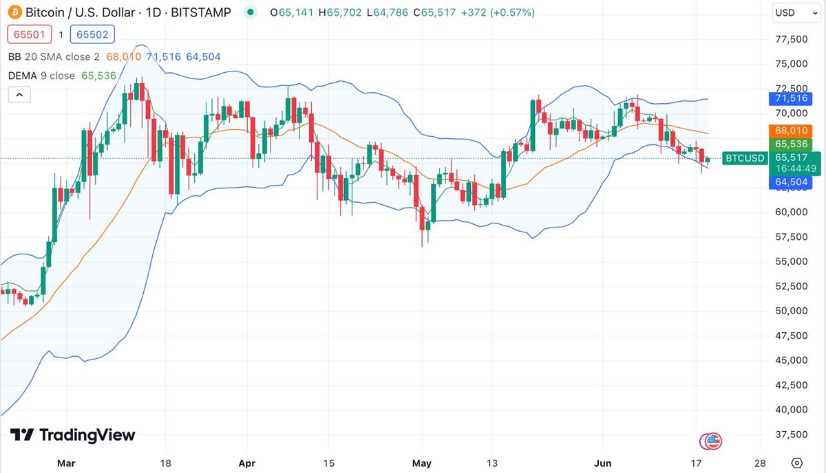 Курс BTC в среду топчется около $65 625. Внутри дня стоимость флагманской криптовалюты подрастает чисто символически, за неделю ее цена опустилась на 2,5%.