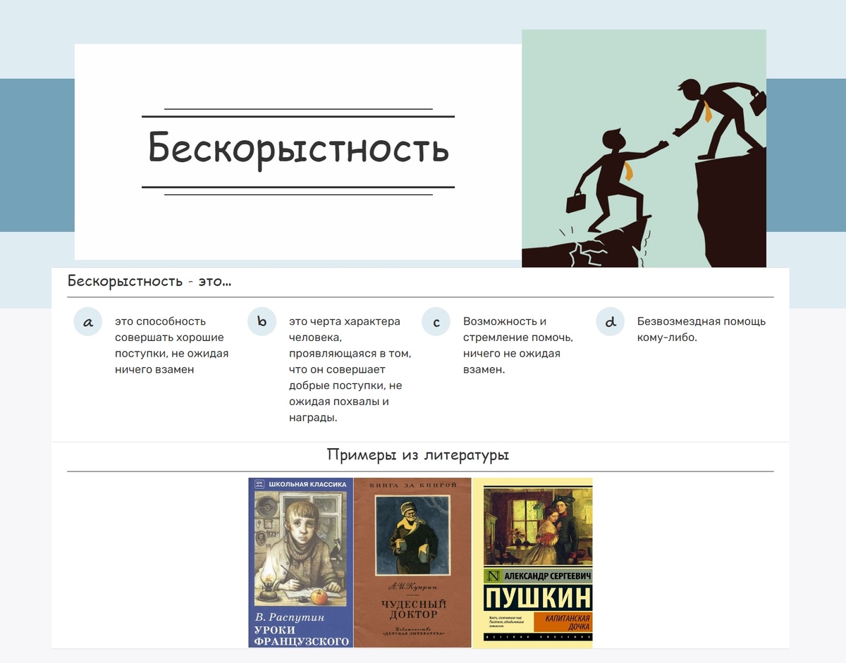 БЕСКОРЫСТНОСТЬ: рабочий лист для сочинение 13.3. ОГЭ