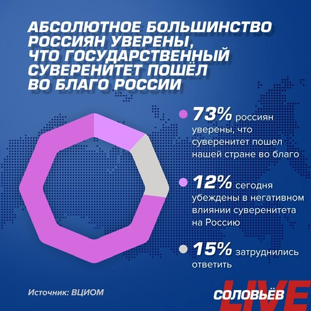 Абсолютное большинство россиян уверены, что государственный суверенитет пошёл во благо России