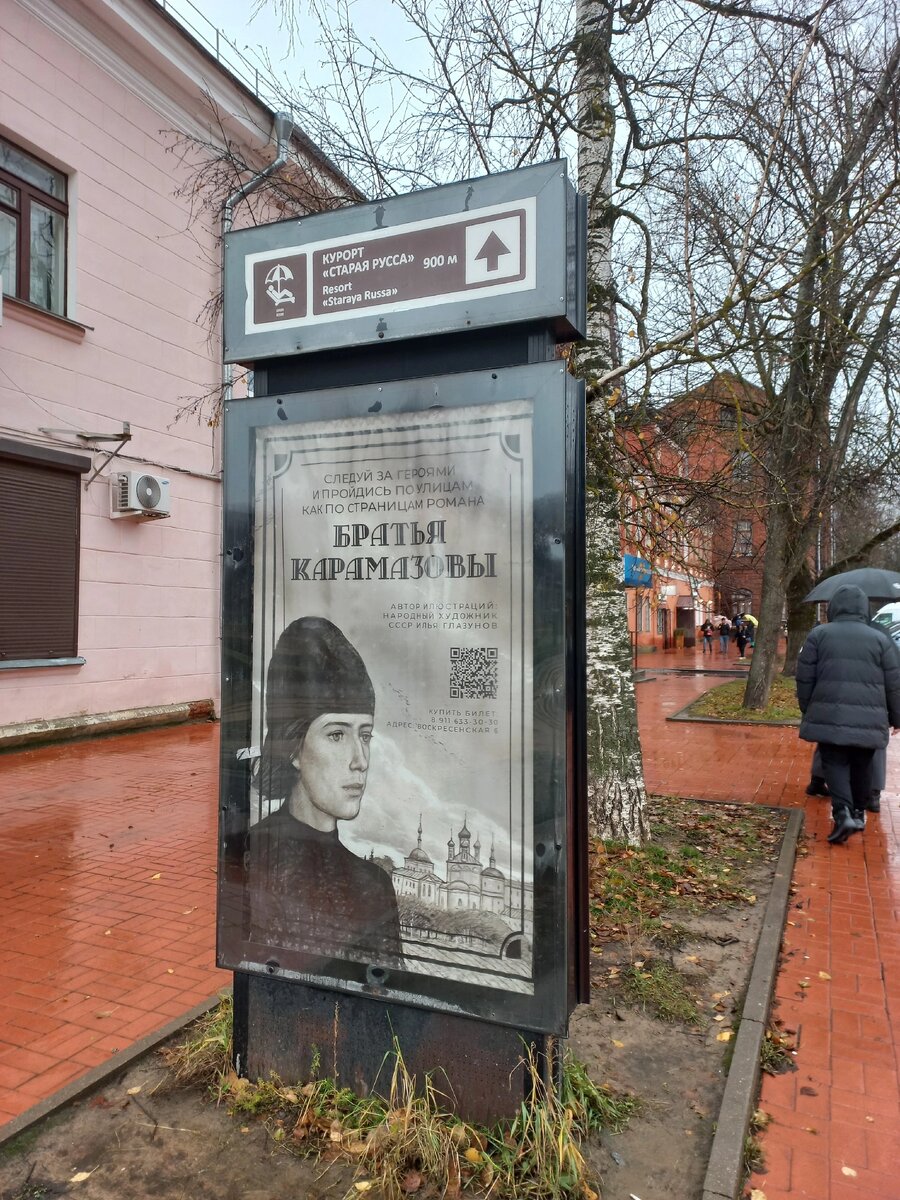 Спектакль состоялся 6 ноября 2023 г. в рамках XXVII Международного театрального фестиваля Ф.М. Достоевского. Спектакль Городского Центра Туризма г. Старая Русса поставил заслуженный артист России Даниил Донченко. Звукорежиссер – заслуженный артист России, артист Новгородского академического театра драмы Анатолий Устинов. Еще год-полтора назад, я даже не представляла, что с таким упоением буду поглощать Достоевского, я боялась его даже в руки брать, а потом вновь его для себя открыла с рома "Игрок". Итак читая и пытаясь понять роман "Братья Карамазовы" я отправилась на аудио-спектакль-променад в рамках проходящего Международного фестиваля, на историческую родину романа- в город Старая Русса. В организации данной постановки всё продумано- от маршрута, который символично заканчивается у памятника Фёдору Михайловичу, до заботливо предоставленных фирменных дождевиков). Полагаю, что это замечательная возможность познакомиться с основными событиями романа и городом, пройти путями геро