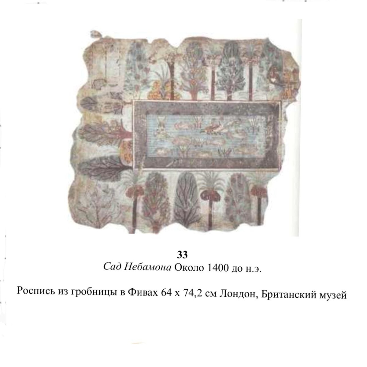Некоторые части проаущены здесь тк нечитабельны вне телеграма. Можете восполнить здесь "Росписи и рельефы ярко обрисовывают жизнь древних египтян. Но при первом знакомстве они могут вызвать недоумение. Дело в том, что египетские художники изображали реальную жизнь иным, отличным от нашего способом, поскольку иными были стоящие перед ними задачи. Пренебрегая внешней привлекательностью, они стремились к целостности образа. Художнику нужно было передать все неизменные свойства объекта с предельно возможной ясностью и полнотой. Египтяне не пытались зарисовать натуру с какой-либо случайной точки зрения. Рисуя по памяти, они следовали строгим правилам, требовавшим четкости всех изобразительных элементов. Фактичечки, их метод ближе к картографии, чем к живописи". Далее приводится в пример изобрвжение сада для примера (см приложенную картинку) и вот что написано о нем "...они просто давали вид пруда сверху, а деревья изображали фронтально. Птиц и плавающих в пруду рыб трудно распознать сверх