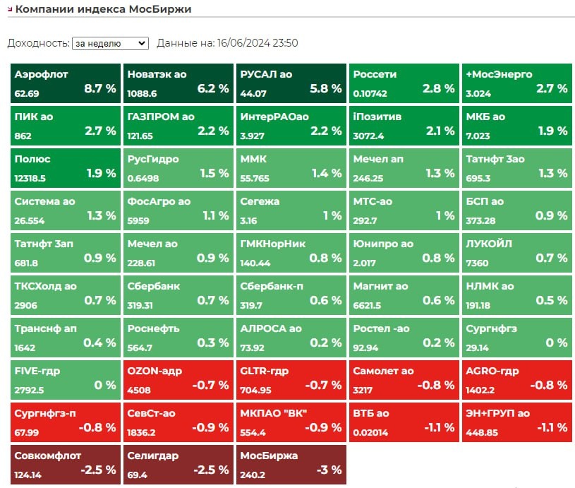 Уважаемые читатели, доброго дня. За прошедшую неделю российский рынок прибавил 0,5%. Но сделал он это очень "эмоционально", провалившись 13.06 больше 4%, но к концу недели отыграв это снижение. Рассмотрим ТОП-3 акции прошлой недели Аэрофлот (AFLT), Новатэк (NVTK) и Русал (RUAL). «Аэрофлот — российские авиалинии» (AFLT) — российская государственно-частная авиакомпания, образованная из одного из государственных социалистических предприятий, входившего в состав советского «Аэрофлота». Также вместе с дочерними авиакомпаниями «Россия» и «Победа» образует авиационный холдинг Группа «Аэрофлот», который входит в число двадцати ведущих авиаперевозчиков мира по пассажиропотоку. Компания в последнее время стала постоянно попадать в наши обзоры. Для нас это выглядит немного странно, но напомним, что рынок может быть иррационален долгое время🙂 Почему же для нас это странно? Да потому что на прошлой неделе рыночная капитализация Аэрофлота обновила исторический максимум (263 млрд. руб.) Как так, спр
