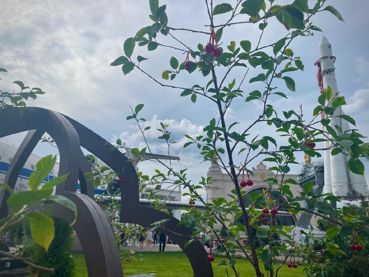 Владимирская область представляет на выставке владимирскую вишню. Правда, не совсем обычную. Деревья украшают стеклянные ягоды, изготовленные мастерами из города Гусь-Хрустального.
