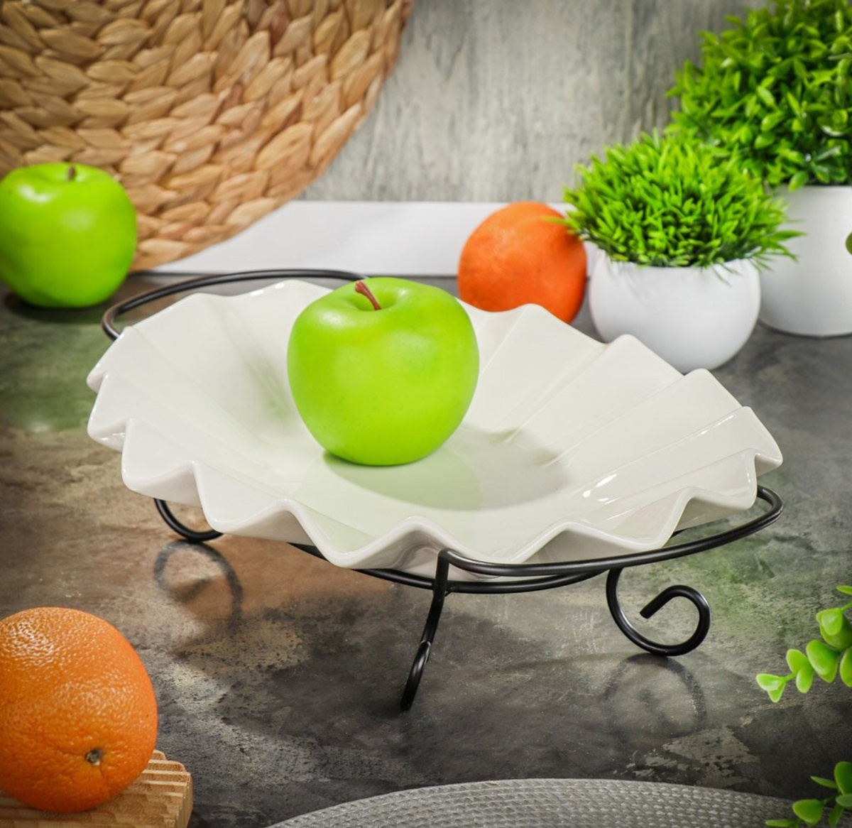 Мне давно нравится керамическая ваза для конфет на ножке. Смотрится очень изысканно. Размер - 33*20*9 см. Керамическое блюдо на металлической подставке я себе покупала в прошлом году перед Пасхой. Цена было 800 р. Это повторный завоз. Вещь очень интересная и неординарная. Размер - 40*28*8 см.
