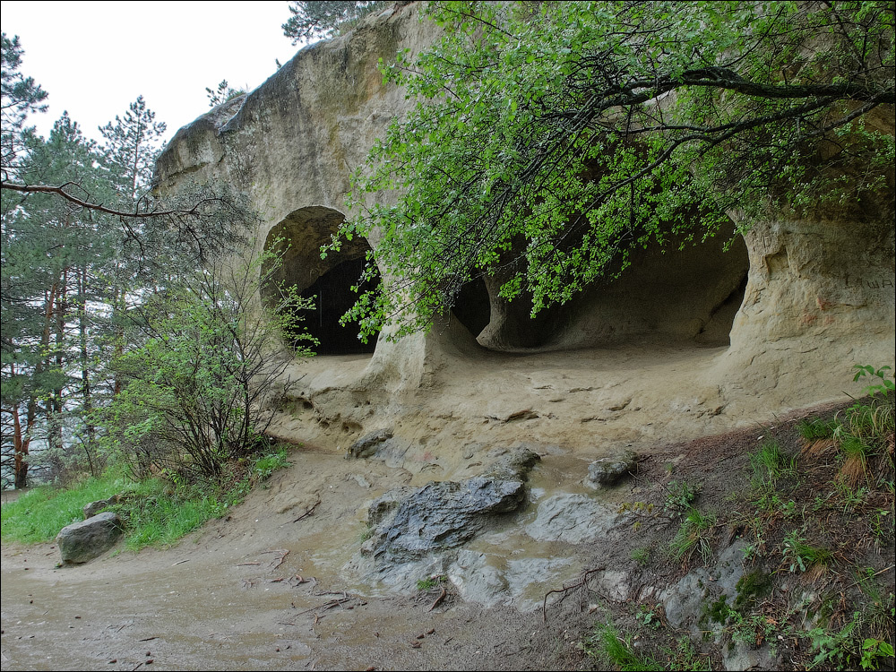 Потом над тропой показались гроты. Большие округлые арки в охристого цвета скале.