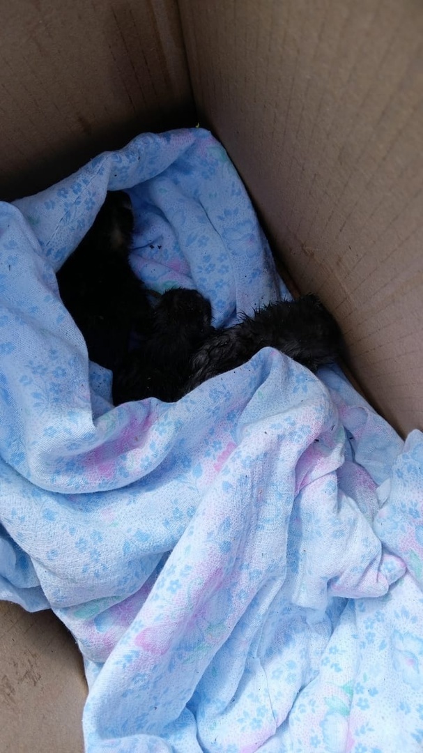 Снова коробка с новорожденными котятами у помойки