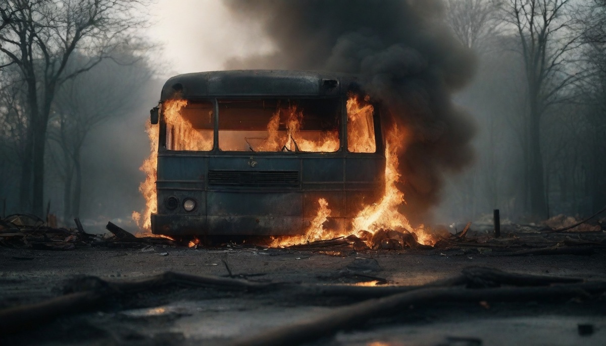 Рейсовый автобус сгорел и выжег все в округе 100 метров