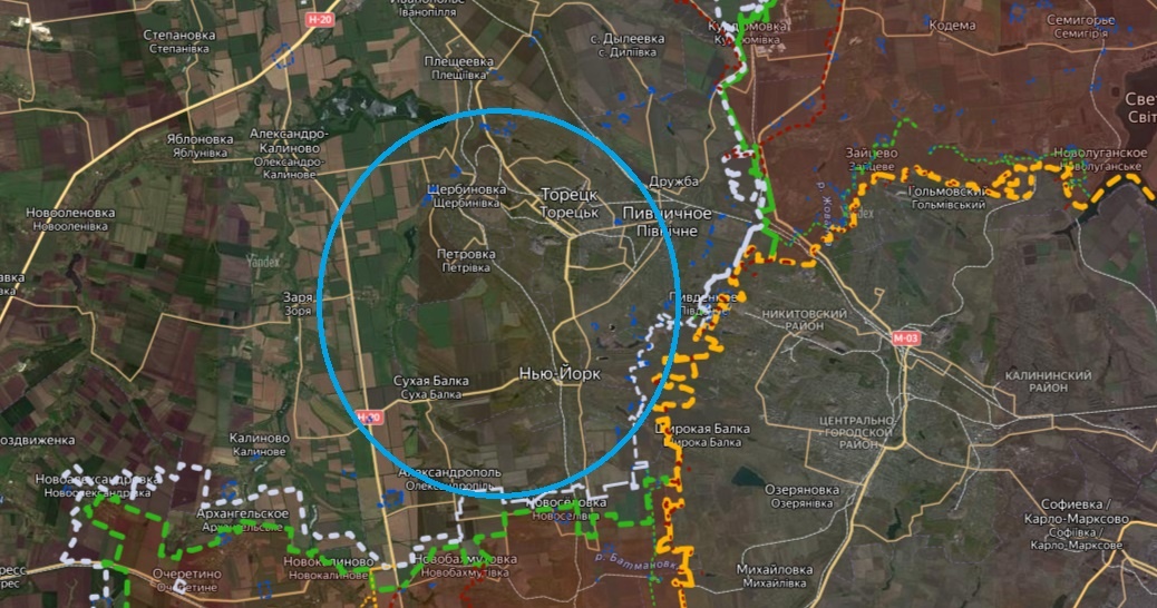 На линии соприкосновения есть участок, где не было никаких движений аж с 2014 года. Даже в 2022 году там ничего практически не сдвинулось. Оно и понятно, нeбратья там укреплялись на протяжении 8 лет. Построили довольно капитальные сооружения и переть на них было себе дороже. Поэтому и было всё тут так застывши. Правда пару месяцев назад нeбратья что-то попытались взбрыкнуть, поперли вперёд, заняли пару наших позиций, но быстро мы их выкинули. И практически всё. В остальное время тишина. Вот это участок, знаменитый Нью-Йорк: Вчера весь день приходили сообщения, что наши провели мощную артподготовку. «Старожилы» такого не припомнили, даже, говорят, в 2022 такого не было. Стало понятно, что это не какая-то чья-то прихоть, а настоящая подготовка к движению вперёд. И уже к ночи пошли сообщения, что нашим парням удалось продвинуться. Изначально была информация про два места продвижения, а всего сообщалось о пяти местах, где наши двинулись вперёд. На лицо явно скоординированная, продуманная о