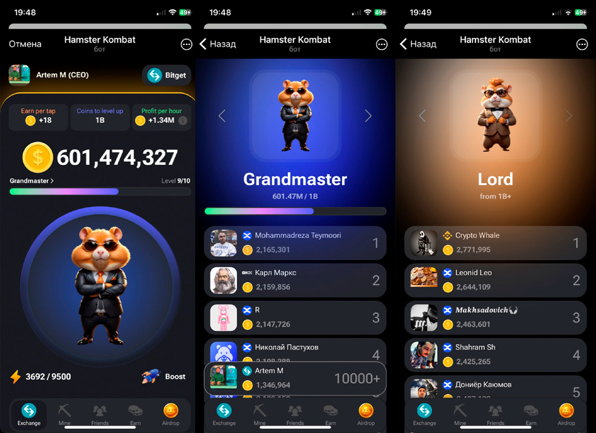 И снова обращаемся к скриншоту выше. Не закрашивал название одного из своих двух. Примечательно, что это был мой первый реферал, разумеется. Сам для себя первым же стал Мастером и Грандмастером. Там ещё был хардкор к 9-10 мая. Не было комбо, шифров, а только чистая прокачка карточек и отправка реферальных ссылок по миру телефонной книжки.