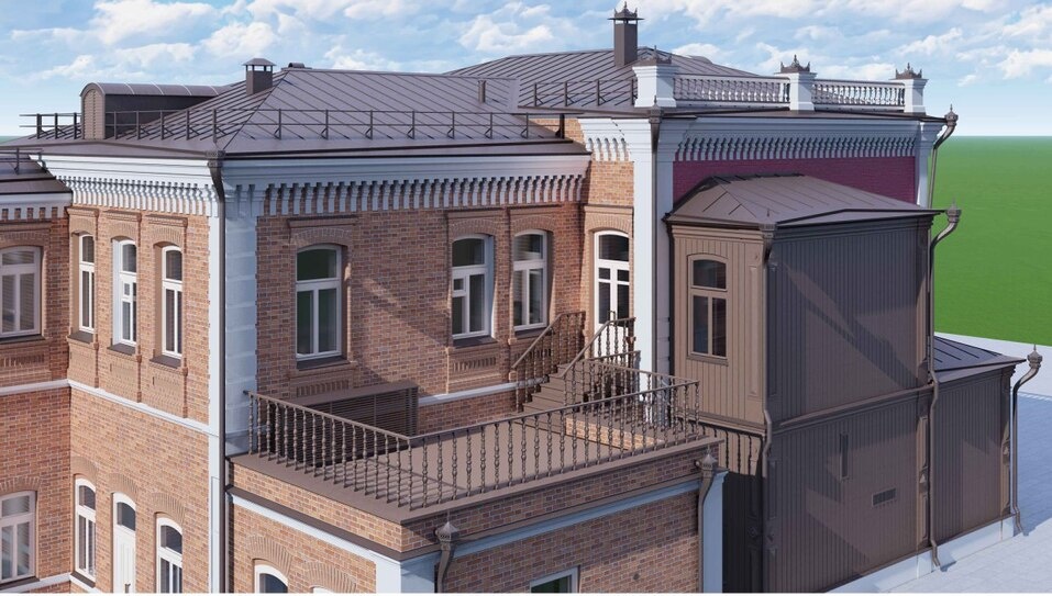 Во время реконструкции будет восстановлена деревянная лестничная клетка, которую разобрали в советские годы. Когда-то она обеспечивала отдельный вход на второй этаж. Проектировщики воссоздали исторический облик здания. Еще одна лестница станет дополнительным эвакуационным выходом.