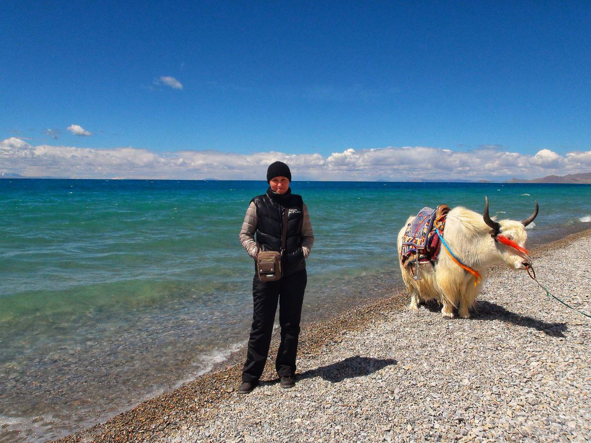 Его ещё называют Небесным озером. Находится оно примерно в 110 км от Лхасы на высоте около 4700 метров на уровнем моря. Удивительно, что несмотря на то, что озеро расположено высоко в горах, вода в нём солёная. Это отголоски прошлого, когда Гималаи ещё покоились на дне древнего океана. Мы были на берегу со стороны монастыря Таши-Доче-Гомпа. Дорога от Лхасы – прекрасный асфальт, как, впрочем, и во всём Тибете. Место популярно как у паломников, так и у туристов. Поэтому есть и большая стоянка, и множество кафешек, и туалеты. И переночевать тоже есть где. Место нереально красивое! Чистый высокогорный воздух прозрачен и для фотографов тут рай. Правда долго быть тут сложно – сильный ветер дует практически всегда. Да и высота немаленькая. Мы уже к этому времени долго колесили по Тибету и адаптировались. А вот если в Лхасу прилететь на самолёте и сразу приехать сюда, то будет тяжко – горная болезнь гарантирована. Но место стоит того, чтобы здесь побывать!