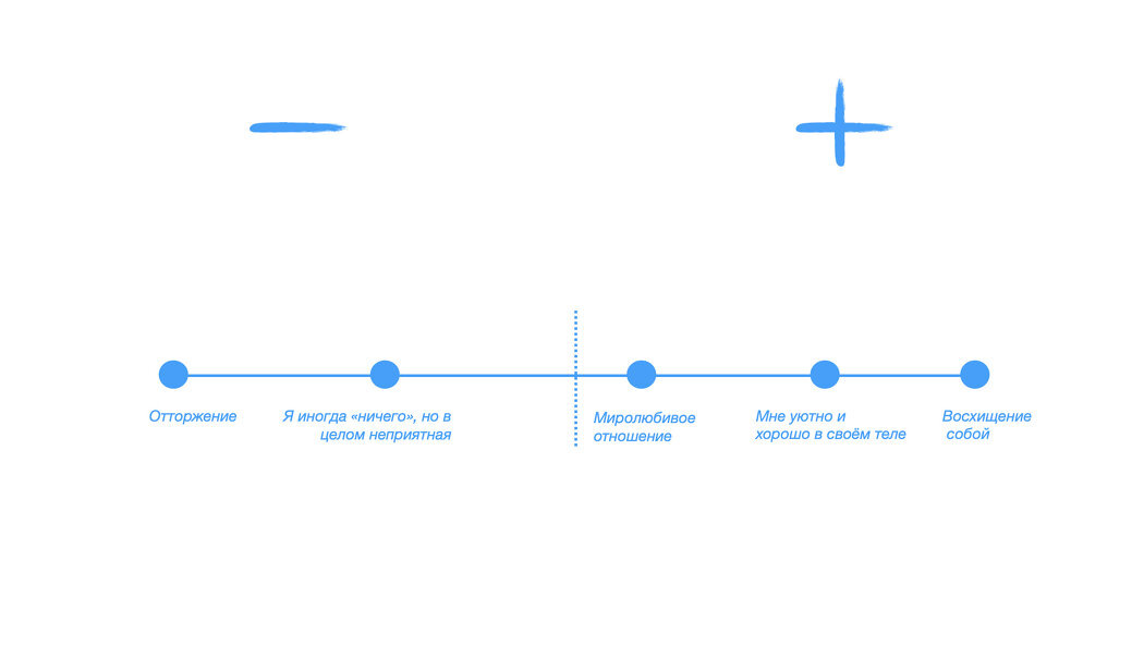 Принимать (т.е., ценить и любить) себя можно в трёх аспектах: принимать свою внешность, принимать свой характер и принимать свои манеры поведения. В этой статье речь пойдёт именно о принятии своей внешности.* Степень принятия своей внешности может быть разной. Если мы представим себе это принятие как некий континуум, то на нём будет множество точек: от точки восхищения своей внешностью (конечная точка положительного полюса) до выраженного отторжения (конечная точка полярного отрицательного полюса). В психотерапии мы задаёмся целью принять себя до любой точки положительного полюса этого континуума: не так важно, будет это прямо восхищением или просто реалистичным, миролюбивым, философским взглядом на свои внешностные активы. Нам главное - от отрицательного полюса совсем уйти. Кто-то скажет: легко принять себя, когда ты красивый. И пиши пропало, если не очень. На самом деле, всё, конечно же, устроено сложнее: Абсолютно любая внешность как даёт определённые возможности, так и накладывает