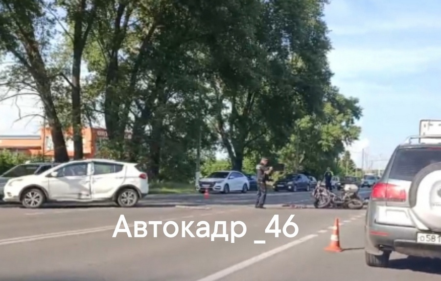 По предварительным данным очевидцев, которые выложили кадры с места в паблике «Автокадр_46», в поселке Дичня столкнулись автомобиль «Лифан» и мотоцикл.