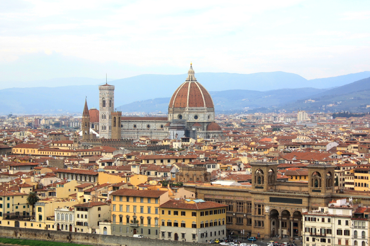 Полюбуйтесь знаменитым кафедральным собором Санта-Мария-дель-Фьоре (или просто Дуомо, как принято у итальянцев).