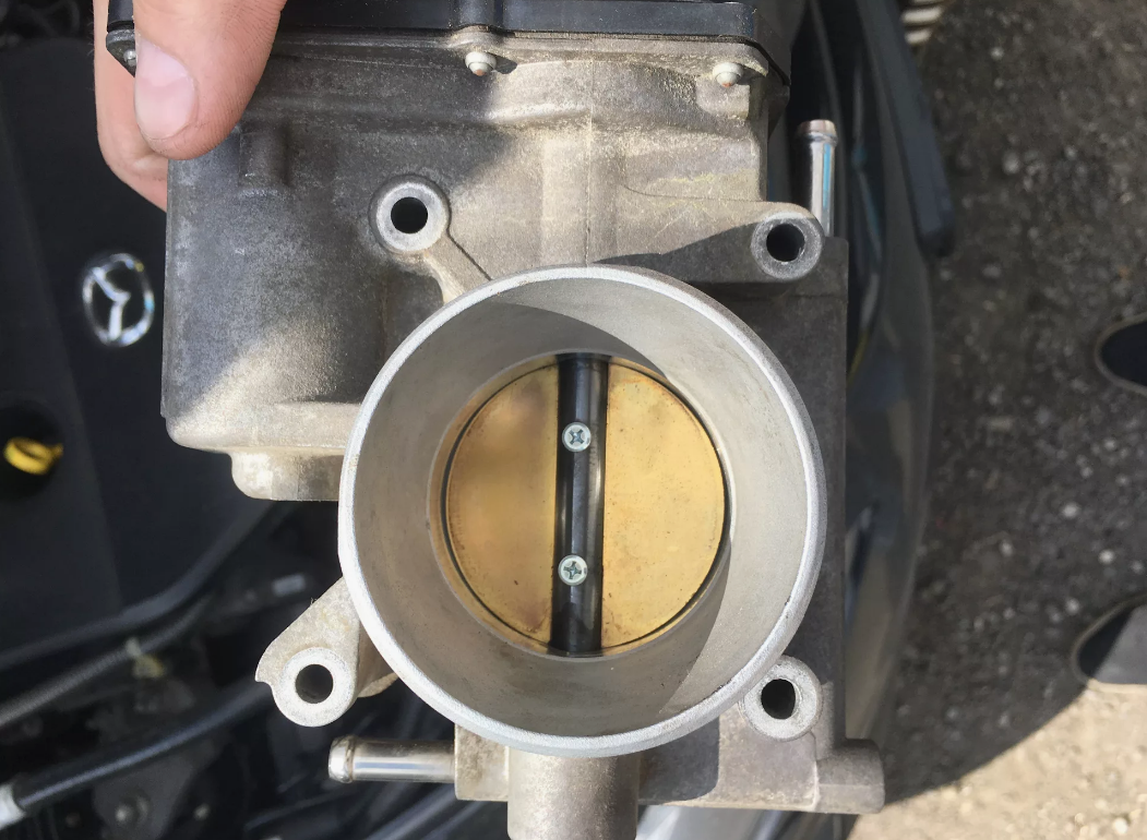 На некоторых двигателях автомобилей Мазда может наблюдаться неустойчивая работа на оборотах холостого хода во время замедления автомобиля до полной его остановки. Регистрации каких-либо диагностических кодов неисправности DTC системой самодиагностики при этом не происходит. Причиной могут являться отложения сажи на внутренней поверхности корпуса дроссельной заслонки, и уменьшение потока воздуха в системе впуска, что в ряде случаев приводит к остановке двигателя. Для профилактики возможной неисправности выполняется чистка дроссельной заслонки от загрязнений. Чистку следует выполнять при возникновении симптомов, указанных в начале, либо при условиях, свидетельствующих об отложениях и изложенных в приведенной ниже процедуре. 1. Подключите M-MDS (IDS) или аналог к DLC-2.