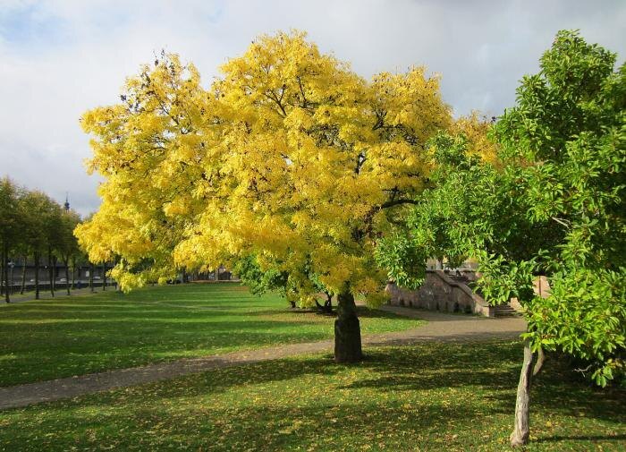 Ясень — это статное, быстрорастущее лиственное дерево, которое часто можно встретить в парках и на дачных участках. Но стоит ли высаживать его на своей даче? Рассмотрим основные преимущества и недостатки выращивания ясеня. 1. Декоративность. Ясень отличается изящным, стройным силуэтом и красивой ажурной кроной. Осенью его листва приобретает яркие золотисто-жёлтые оттенки. 2. Быстрый рост. Ясень растет довольно быстро, достигая высоты 20-25 метров за 15-20 лет. Это делает его отличным вариантом для быстрого озеленения участка. 3. Экологичность. Ясень хорошо очищает воздух, насыщая его кислородом. Его крона также защищает от солнечных лучей, создавая приятную тень. 4. Прочность древесины. Древесина ясеня отличается высокой твердостью и износостойкостью, что делает её востребованной в строительстве и мебельном производстве. 5. Устойчивость к факторам среды. Ясень хорошо переносит засуху, морозы, городское загрязнение воздуха, устойчив к болезням и вредителям. 1. Агрессивная корневая систе
