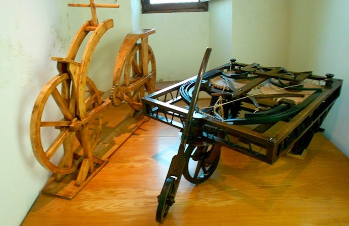 Ferrari. Alfa Romeo. Lancia. Стильно, быстро, надежно. Вы не задумывались, почему именно Италия? Возможно потому, что некоторые итальянцы думали об автомобиле еще 500 лет назад. В 1966 году монахам-реставраторам аббатства Гроттаферрата (Grottaferrata), что располагается в Лацио и является единственным в Италии преемственным монастырем византийского обряда, была поручена реставрация рисунков итальянского гения Леонардо да Винчи, которые обычно называют "Атлантическим кодексом". Так, на одном из 1300-х листов были обнаружены карандашные изображения схемы велосипеда с цепным приводом и трехколесной механической повозки, ставшей прообразом первого автомобиля. Считается, что рождение первого велосипеда и автомобиля в воображении Леонардо произошло в 1470-е годы. Однако, только в 2004 году итальянский ученый Карло Педретти раскрыл секрет механизмов, приводящих в движение «Леомобиль». Таким образом, спустя пять столетий ученые, наконец-то, сумели разобраться в проекте удивительной самодвижуще