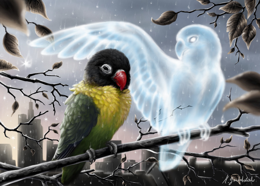 Здравствуйте, друзья. Наша Стеша ушла на радугу. Ничего пока не могу, всё валится из рук. Тоша остался один и сейчас всё моё внимание отдано ему, потому что птиц очень переживает. Кореллы - очень умные птицы и потерю пары переносят непросто. Вижу, что несколько читателей уже покинули канал. Понимаю. Но писать я просто не в состоянии. Мне нужен перерыв. Возможно, в течение недели всё более-менее придёт в норму и Тоша свыкнется с мыслью, что он теперь один. Наши попужки - члены нашей семьи. Все, у кого есть питомцы, неважно, кто именно, меня поймут. Всех обнимаю. Берегите себя и своих близких. Надо мною, прошу, не плач, Я с тобой, я не сплю - поверь! В ветре я, что несётся вскачь, В каплях я, что стучатся в дверь. *** В зное лета, в ночной тиши Я дождём над тобой прольюсь. За меня ты теперь дыши... Просто помни. И я вернусь. *** Я вернусь в звонком пении птиц, Чтоб будить тебя по утрам. Просто ты ещё где - то тут, Ну, а я - уже где - то там. *** Тут, на радуге, много друз