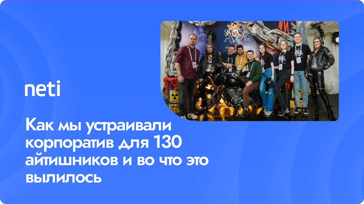 Когда вся компания работает на удалёнке, корпоратив становится чем-то большим, чем просто очередным совместным сбором. В Neti каждая подобная встреча — настоящее событие, поэтому и провести её хочется так, чтобы она запомнилась надолго. Эта история о том, как мы собрали 130+ айтишников со всей страны и организовали корпоратив, который останется в памяти у каждого.