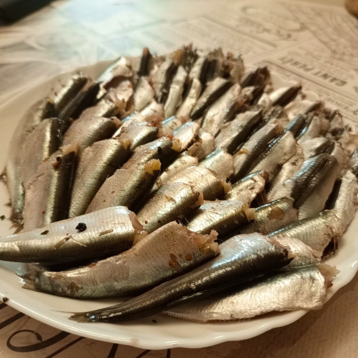 Ещё в рыбном отделе есть Керченский рапан в заморозке и малосольная хамса.
