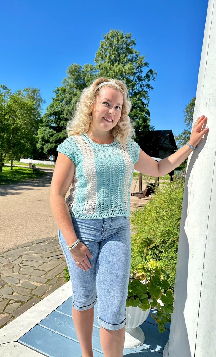 Вязаный крючком топ из 100% льна в технике безотрывного поперечного вязания😉🧶❤️