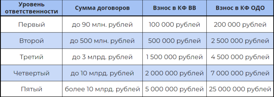 Всего существует 5 уровней ответственности. И каждому уровню соответствует определенная сумма заключаемых договоров.