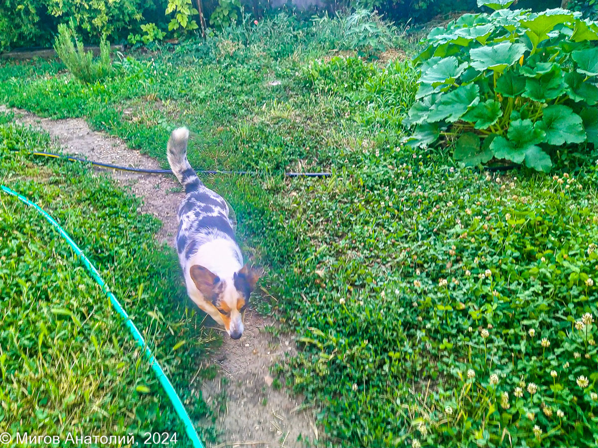 Ну а мы с Тильдой идём смотреть, что у нас уже появилось съедобного и вкусного помимо огорода.
