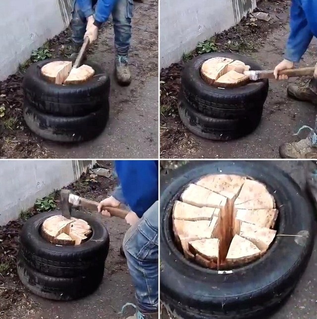 1)Дачники - это умный народ. Они привыкли всё беречь и приноровились не выбрасывать, казалось бы не нужные материалы и даже мастерить из них очень полезные вещи Хочу показать хорошие идеи создания удобной дачи Если взять 2 ненужные покрышки, поставить одну на другую и поместить во внутрь бревно, то получится очень практичное решение. Рубишь дрова, а щепки не летят Для уличного санузла придумали такое природное решение Можно взять подходящую ветку, для красоты обработать лаком и она уже совсем по другому смотрится У каждого где-то валяются не нужные доски и кирпичи Поэтому предлагаю вам практично использовать их Грядки из строительных блоков, можно использовать обыкновенные кирпичи А если наполнить их землёй, то можно получить клумбы Хранить дрова и ветки для мангала можно в вот такой приспасобе В теже самые строительные блоки вставляем доски под углом, и складываем туда дрова От обычной бутылки отрезаем горлышко, вырезаем 2 см И так можно сделать практически для каждого инструме