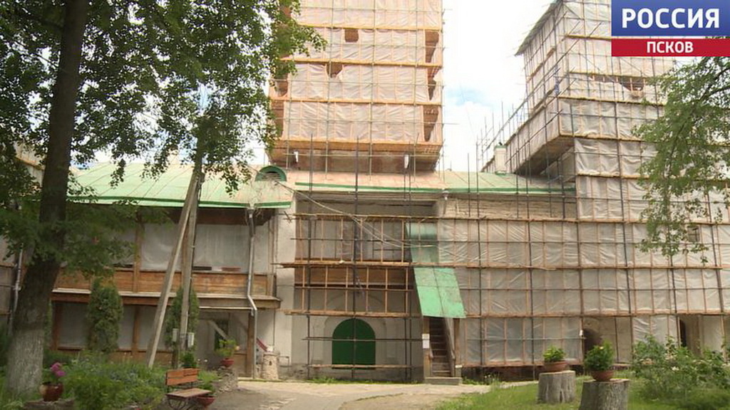 О ходе реставрационных работ, проводимых в храме архидиакона Стефана Мирожского монастыря, рассказали в эфире ГТРК «Псков»